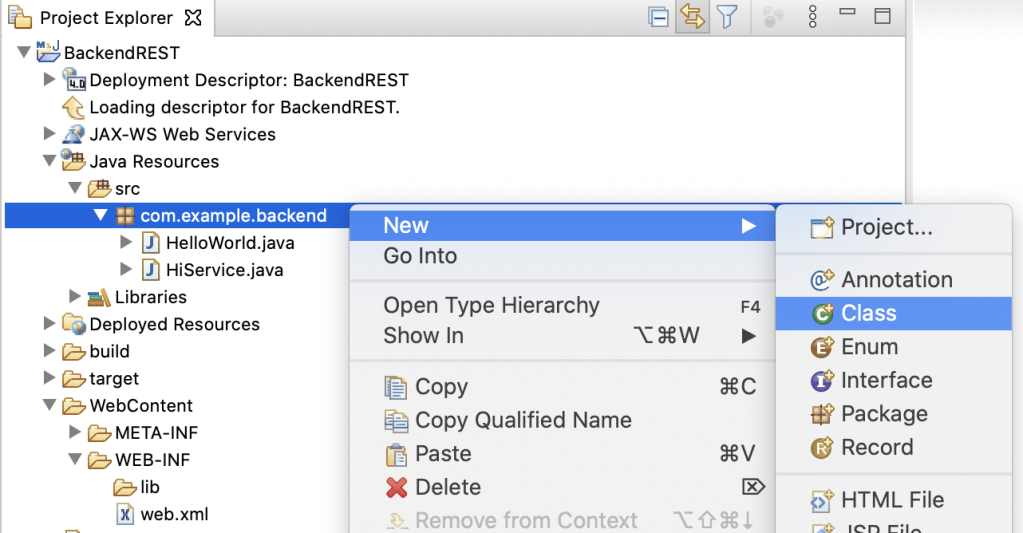 So far, we have created a dynamic web project called BackendREST and we could make a http get request to the server running on localhost port 8080 and we get a response saying “hello world!” text on your browser.