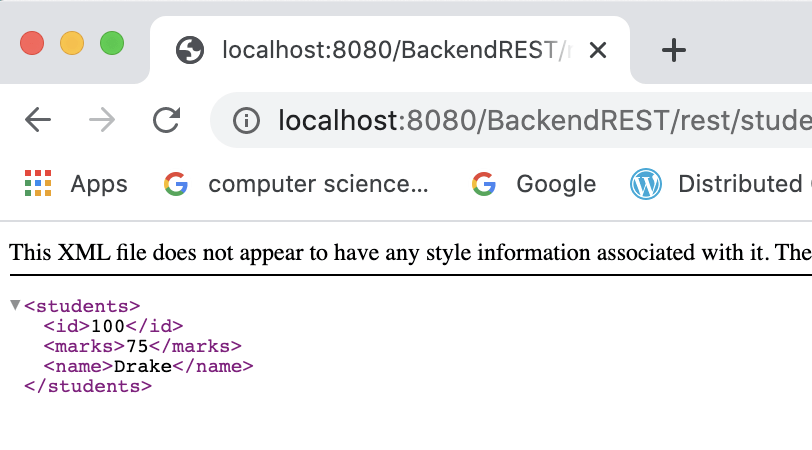 @Produces(MediaType.APPLICATION_XML) // the getStudents method returns the students object in XML format