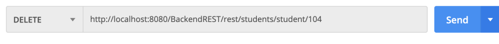 DELETE –> Deleting a student by id. Give in the URL as shown below –> the path is /rest/students/student/104