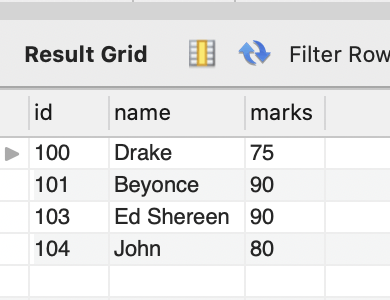 (Attention: Make sure your MySQL is running on default port 3306) Place the below snippet in you mysql file and execute the query. You should see two student entries in your table.