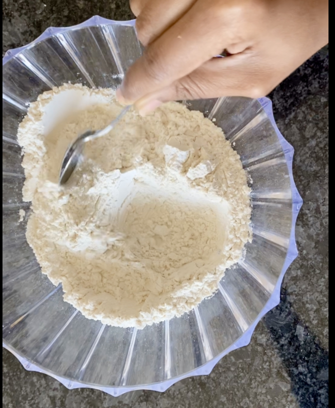 Step 1: In a mixing bowl add all the dry ingredients – Flour, baking powder, baking soda and salt. Mix all the dry ingredients well and keep it aside.