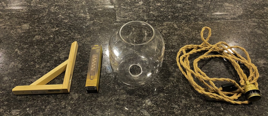 The plugin rope cord you can buy it from amazon. I spray painted the black part with gold to make it look even. Click here to buy.