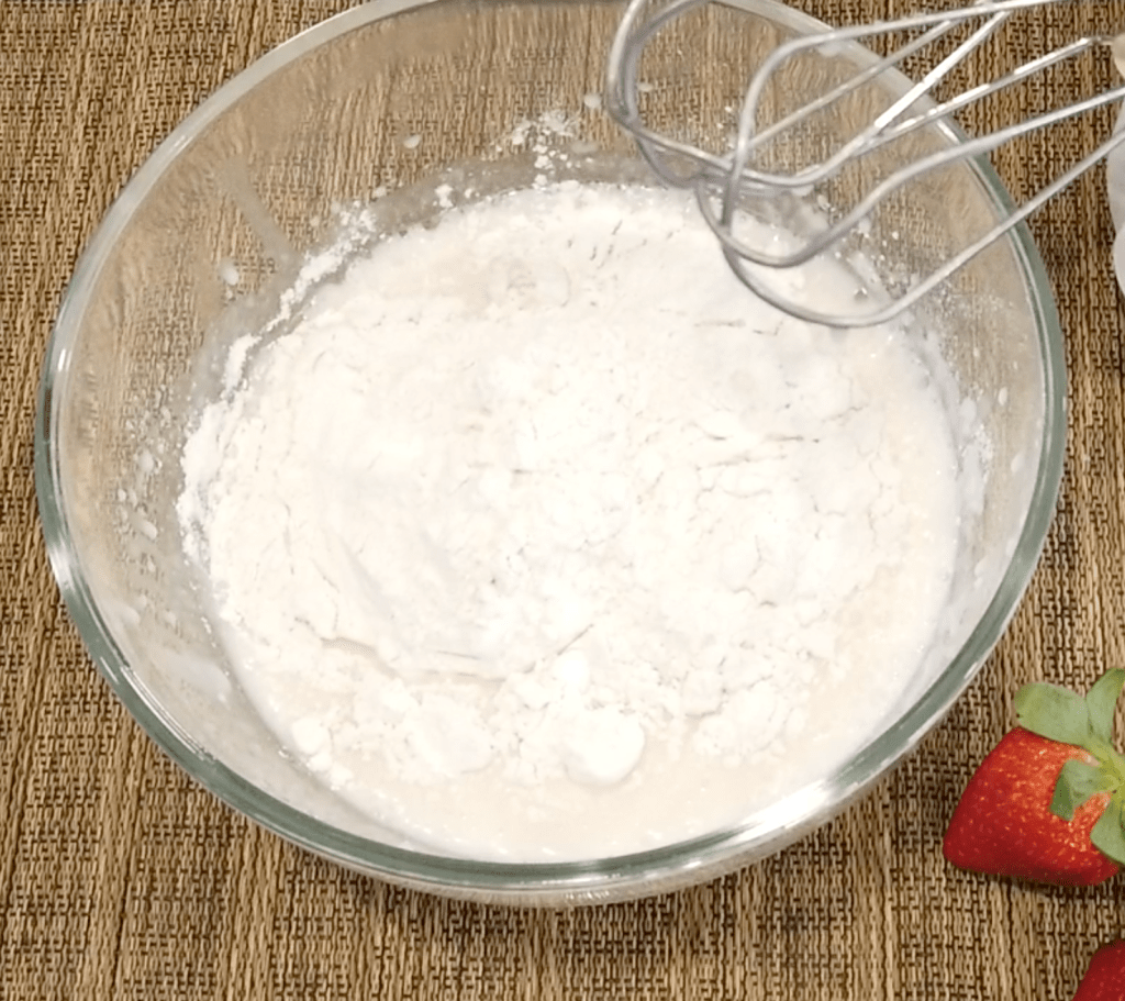 Step 3: To the Curd mixture add All purpose flour and using a spatula mix the ingredients in a cut and fold fashion. Do not over mix the batter make sure there are no lumps.